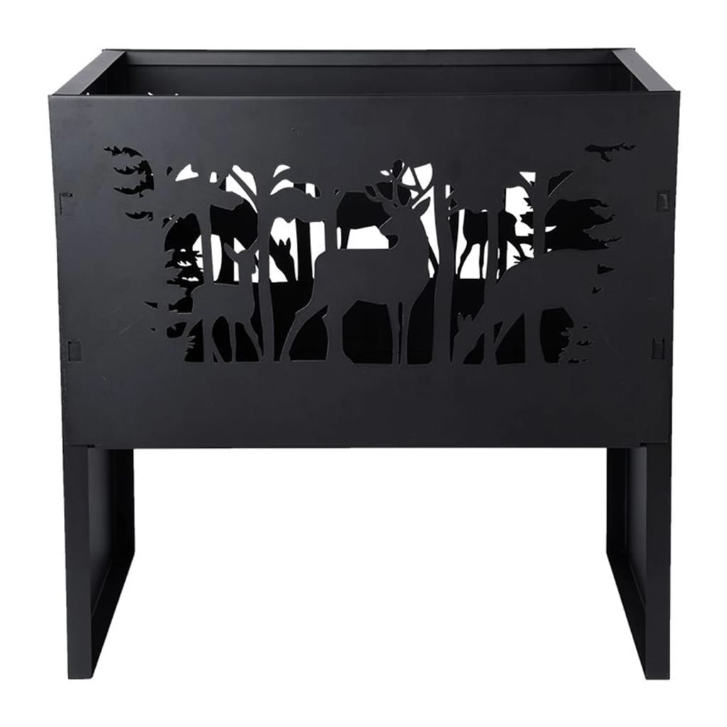 Dieser rechteckige Feuerkorb mit lasergeschnittenen Hirschen von Esschert Design erzeugt wunderschöne Schatten und ist eine Bereicherung für jeden Garten oder jede Terrasse. Er ist Teil der Fancy Flam Kollektion und verfügt über zwei praktische Griffe. Der Feuerkorb ist aus Stahl gefertigt und besitzt einen stabilen Rahmen. Die Garten-Feuerstelle lässt sich einfach montieren, wobei kein Werkzeug erforderlich ist.