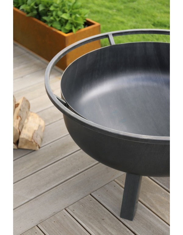 Diese hochwertige Feuerschale wurde in Europa hergestellt. Charakteristische Eigenschaften des Produkts sind eine große Schüssel aus dickem Stahl und sorgfältige Verarbeitung. Die ganze Konstruktion ist sehr fest und stabil. Die Schale ist eine ideale Lösung für diejenigen, die beim Umgang mit Feuer Sicherheit schätzen. Die tragbare Feuerschale kann auf mehrere Weisen verwendet werden. Man kann darin sehr praktisch Feuer anzünden, sie kann als tragbarer Grill oder eine Wärmequelle dienen und wird bestimmt eine stilvolle Beleuchtung darstellen. Die Form der Schale verhindert, dass sich das darin gebrannte Holz auch bei starkem Wind ausbreitet. Der an der Feuerschale angeschweißte Reifen macht das Tragen des Produkts viel einfacher.