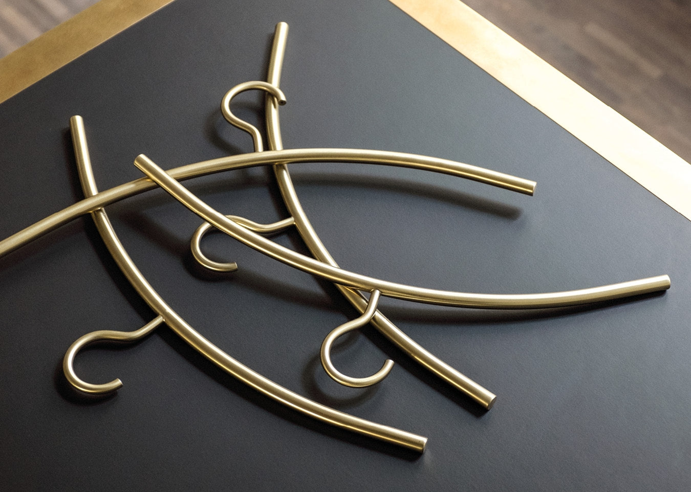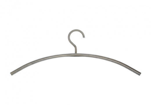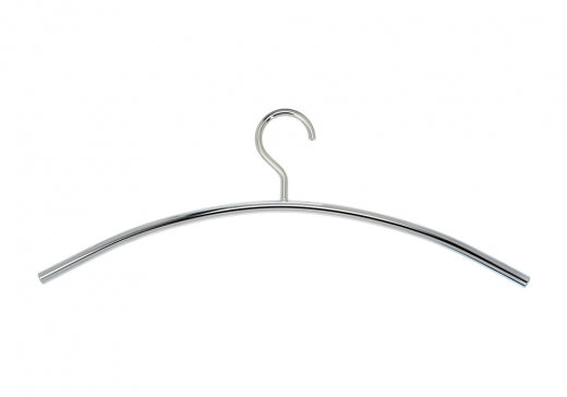 Der Kleiderbügel 0150. setzt interessante metallische Akzente und besticht durch seine Leichtigkeit. Gefertigt aus einem Rundrohr, ist er in verschiedenen Metall-Ausführungen erhältlich: glänzendes Chrom, mattes Chrom, gebürsteter Edelstahl und Messing. Der Haken ist fest montiert.