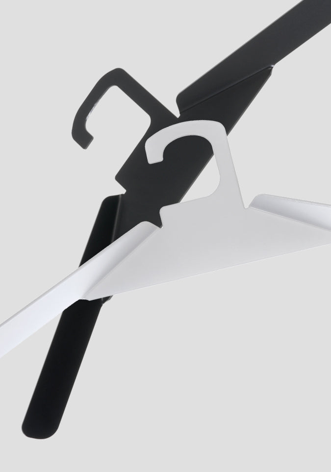 Entdecken Sie den Kleiderbügel 0200. – Ihr neuer funktionaler Favorit für eine optimale Garderobenorganisation. Dieser Kleiderbügel wird aus einem einzigen Stück Flachstahl präzise gelasert und anschließend mit einer hochwertigen Pulverbeschichtung veredelt. Der feststehende Haken sorgt für Stabilität und verhindert ein Verrutschen Ihrer Kleidung.