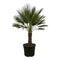 - Diese Palme kann sowohl drinnen als auch draußen platziert werden, benötigt jedoch eine warme und geschützte Umgebung.