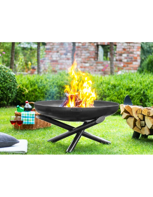 Diese hochwertige Feuerschale wurde in Europa hergestellt. Charakteristische Eigenschaften des Produkts sind eine große Schüssel aus dickem Stahl und sorgfältige Verarbeitung. Die ganze Konstruktion ist sehr fest und stabil. Die Schale ist eine ideale Lösung für diejenigen, die beim Umgang mit Feuer Sicherheit schätzen. Die tragbare Feuerschale kann auf mehrere Weisen verwendet werden. Man kann darin sehr praktisch Feuer anzünden, sie kann als tragbarer Grill oder eine Wärmequelle dienen und wird bestimmt eine stilvolle Beleuchtung darstellen. Die Form der Schale verhindert, dass sich das darin gebrannte Holz auch bei starkem Wind ausbreitet. Unsere Feuerschalen sind aus rohem Stahl ausgefertigt, weshalb sich deren Farbton von der Farbe des auf den Fotos dargestellten Produkts unterscheiden kann. Das ist eine natürliche Eigenschaft von Stahl, die keinen negativen Einfluss auf die Funktionalität und Beständigkeit des Erzeugnisses hat.