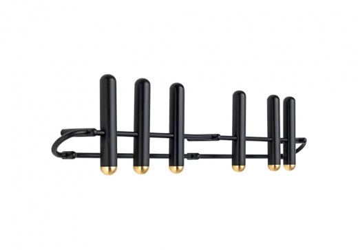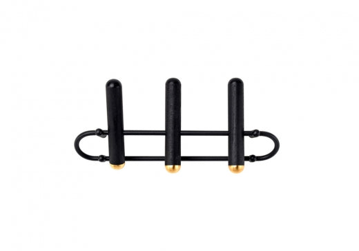 - Verschiebbare Klapphaken: Gefertigt aus deckend lackiertem Massivholz, überzeugen diese durch ihre clevere Mechanik. Ein Messinggewicht sorgt dafür, dass die Haken nach Gebrauch elegant in ihre Ausgangsposition zurückgleiten.