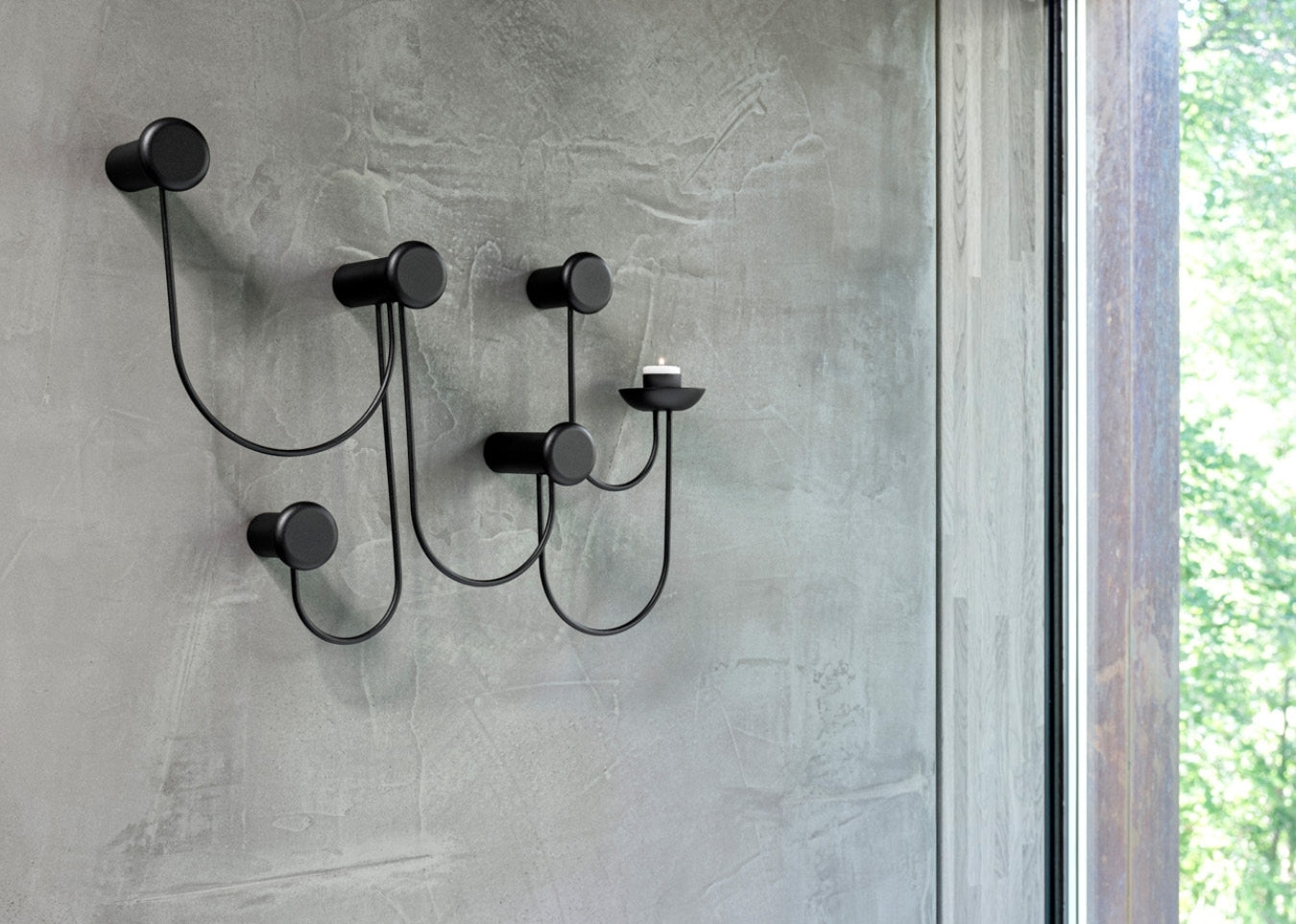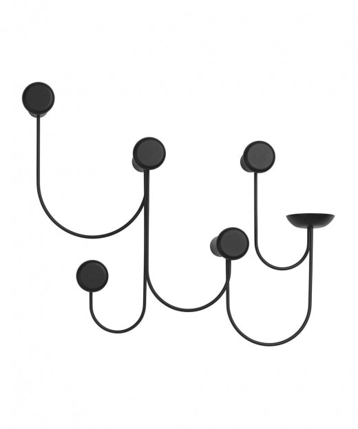 Lassen Sie Ihrer Fantasie freien Lauf und entdecken Sie in der Form dieser einzigartigen Garderobe tänzerische Anmutungen, die an geschwungene Tanzschritte erinnern. Die robusten Garderobenhaken sind aus hochwertigem, farbig pulverbeschichtetem Metall gefertigt und fügen sich nahtlos in das Gesamtbild ein.