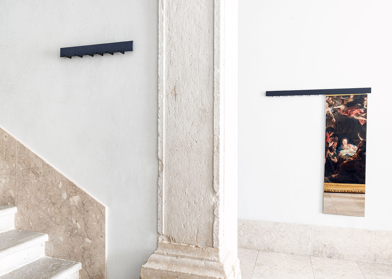 Wählen Sie zwischen zwei Breiten: mit 6 oder 10 verschiebbaren Haken aus eloxiertem Aluminium. Diese Flexibilität ermöglicht es Ihnen, die Garderobe perfekt an Ihre Bedürfnisse anzupassen. Zusätzliche Haken können jederzeit separat bestellt und einfach nachgerüstet werden.